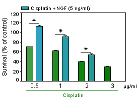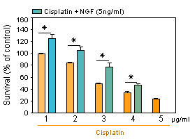 At each dose of cisplatin, NGF at 5 ng/ml is able to protect neurons against the ciplatin damage. -