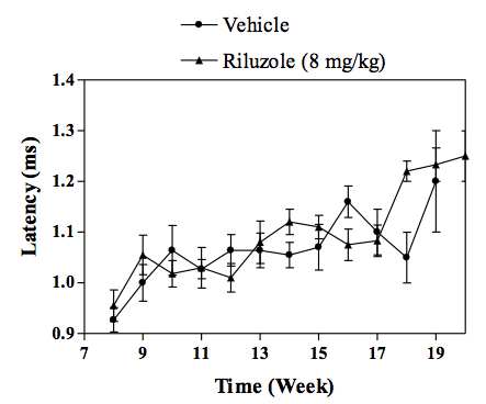 Change in the latency of CMAP in transgenic SOD1 mice.