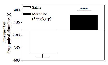 Morphine induce a significant increase in the time spent in the drug-paired compartment.