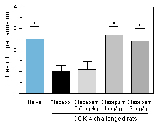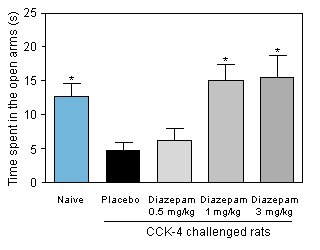 In line with the clinical finding, benzodiazepines normalize the panic anxiety status of rats challenged with CCK-4 or with Yohimbine. This test is cost effective and has a short turn around time.