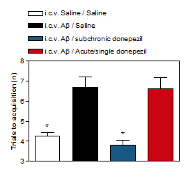 Subchronic but not acute donepezil enhances the retention of passive avoidance in i.c.v. Aβ-injected rats.