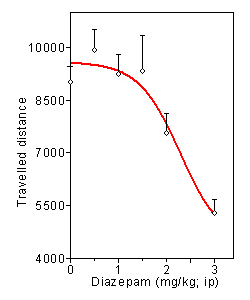 Diazepam ≥ 2 mg/kg is associated with reduced locomotion in the open-field which suggests a sedative effect at doses higher than 2 mg/kg.
