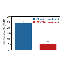 Comparison of disease severity in placebo and Fingolimod-treated rats.