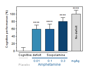 Reversal effect of Amphetamine on cognitive deficit induced by scopolamine in the mouse. Cognitive function was assessed by the ability of mice to perform spontaneous, continuous and sustained alternation in the T-maze.