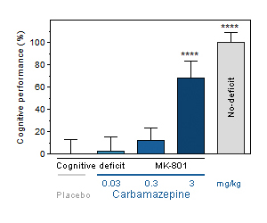Reversal effect of Carbamazepine on cognitive deficit induced by MK-801 in the mouse. Cognitive function was assessed by the ability of mice to perform spontaneous, continuous and sustained alternation in the T-maze.