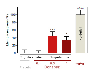 Passive avoidance Reversal effect of Donepezil on memory deficit induced by scopolamine in the rat. Memory was assessed by the ability of rats to avoid a punishing or aversive stimuli during the passive avoidance test.