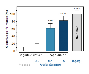 Reversal effect of Galantamine on cognitive deficit induced by scopolamine in the mouse. Cognitive function was assessed by the ability of mice to perform spontaneous, continuous and sustained alternation in the T-maze.
