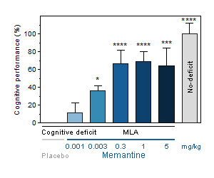 Reversal effect of Memantine on cognitive deficit induced by MLA in the mouse. Cognitive function was assessed by the ability of mice to perform spontaneous, continuous and sustained alternation in the T-maze.