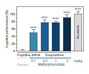 Reversal effect of Methylphenidate on cognitive deficit induced by scopolamine in the mouse. Cognitive function was assessed by the ability of mice to perform spontaneous, continuous and sustained alternation in the T-maze.