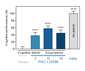 Reversal effect of PNU120596 on cognitive deficit induced by scopolamine in the mouse. Cognitive function was assessed by the ability of mice to perform spontaneous, continuous and sustained alternation in the T-maze.