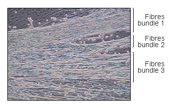 This picture represents 3 innervated muscle fibers bundles on muscle derived cells monolayer.