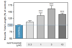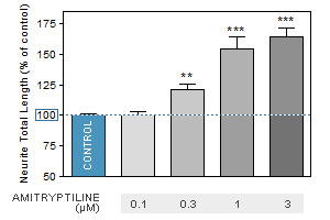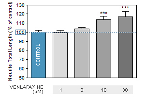 Venlafaxine significantly promotes neurite outgrowth in a dose-dependent manner but in a lesser extent than SSRI or TCA.