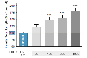 Fluoxetine dose-dependently increases by up to 80% the neurite growth in cortical neurons.