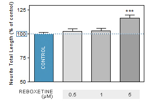 Reboxetine promotes significant neurite growth although the effective concentration window is narrowed by side effect observed beyond 5µM.
