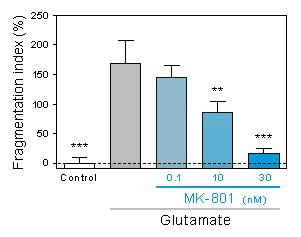 Destruction of the neuronal network induced by glutamate and the neuroprotective effect of increasing doses of MK-801.