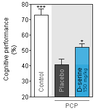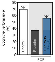 Although cognitive impairment is a major cause of disability in schizophrenic patients, there are no effective drugs that normalize the neurocognitive deficits. Phencyclidine (PCP, NMDA receptor antagonist) has been shown to elicit schizophrenia-like symptoms including cognitive impairment in humans.