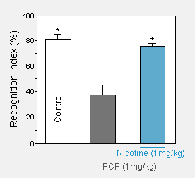 ■ Nicotine treatment improves PCP-induced memory deficit in the rat novel object recognition task.