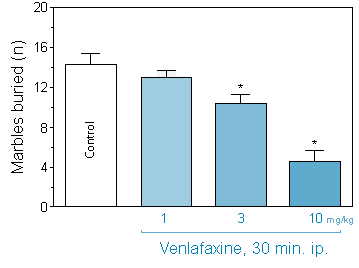 ■ Treatment with Venlafaxine reverses the burying behavior of mice placed in a novel environment.