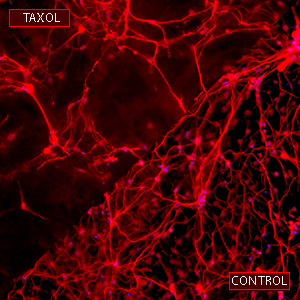 The images below of co-cultures (sensory neurons and Schwann cells) highlight the destruction of the neurite networks.