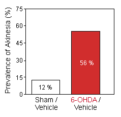The prevalence of Akinesia was markedly high in 6-OHDA hemiparkinsonian rats.