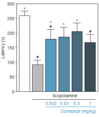 Donepezil : Reversion of Scopolamine-induced cognitive deficit in the Passive Avoidance test in the rat. -