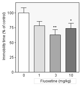 Compound testing addresses the effect of acute treatment on the immobility time of mice. Investigation of the effect of subchronic treatment is also possible.