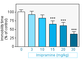 Antidepressant effect of Imipramine given ip. to Swiss mice 30 min before the test. -
