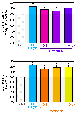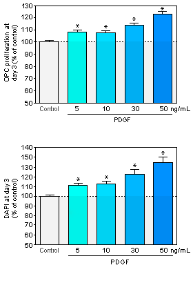 OPC cultures are obtained from cortex of rat pups. Test compounds are added just after cellular adhesion. Proliferation is assayed by an MTT test in 96-multi well plates after 3 days.